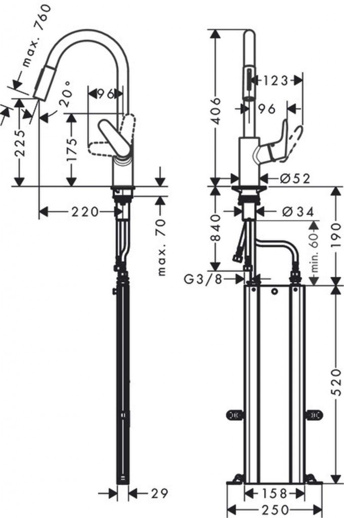 - hadice se vytahuje až 76 cm a zaručuje příjemnou práci a volnost pohybu v okolí dřezu