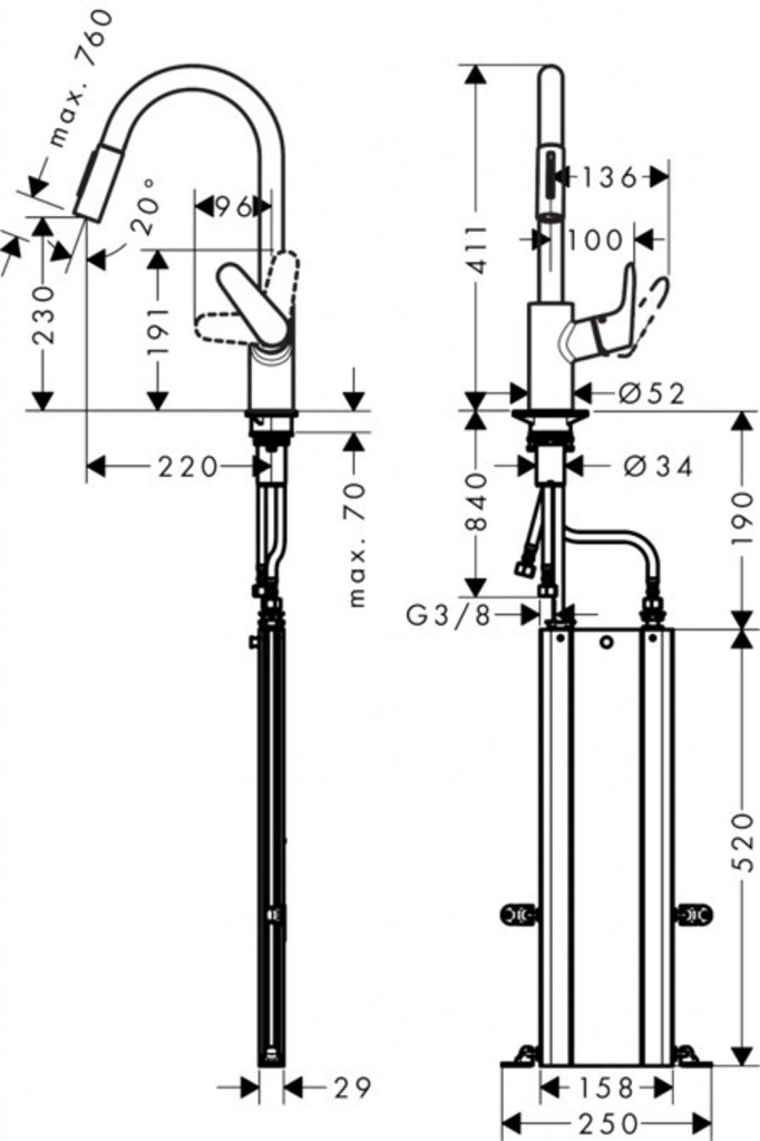 - hadice se vytahuje až 76 cm a zaručuje příjemnou práci a volnost pohybu v okolí dřezu