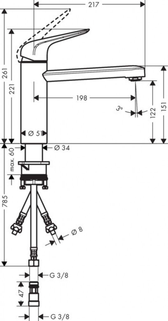 Páková kuchyňská baterie pro beztlakové ohřívače vody