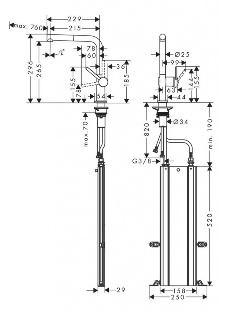 - hadice se vytahuje až 76 cm a zaručuje příjemnou práci a volnost pohybu v okolí dřezu