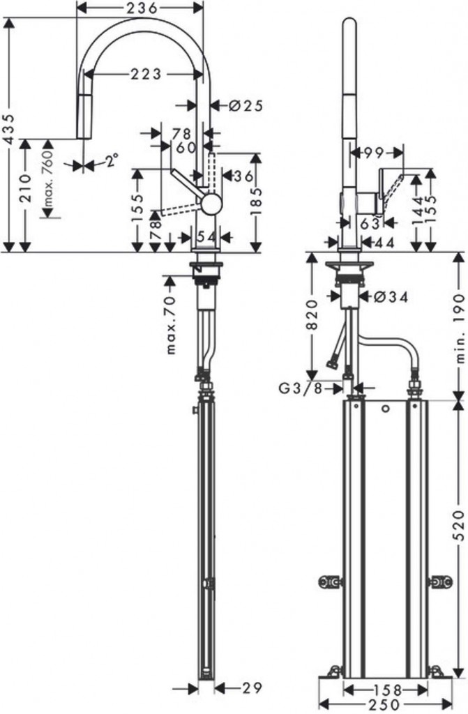 - hadice se vytahuje až 76 cm a zaručuje příjemnou práci a volnost pohybu v okolí dřezu