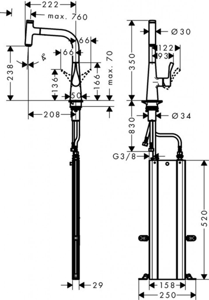 • hadice se vytahuje až 76 cm a zaručuje příjemnou práci a volnost pohybu v okolí dřezu