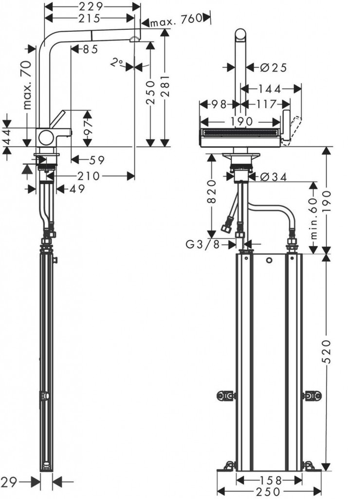 - hadice se vytahuje až 76 cm a zaručuje příjemnou práci a volnost pohybu v okolí dřezu