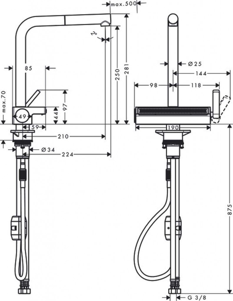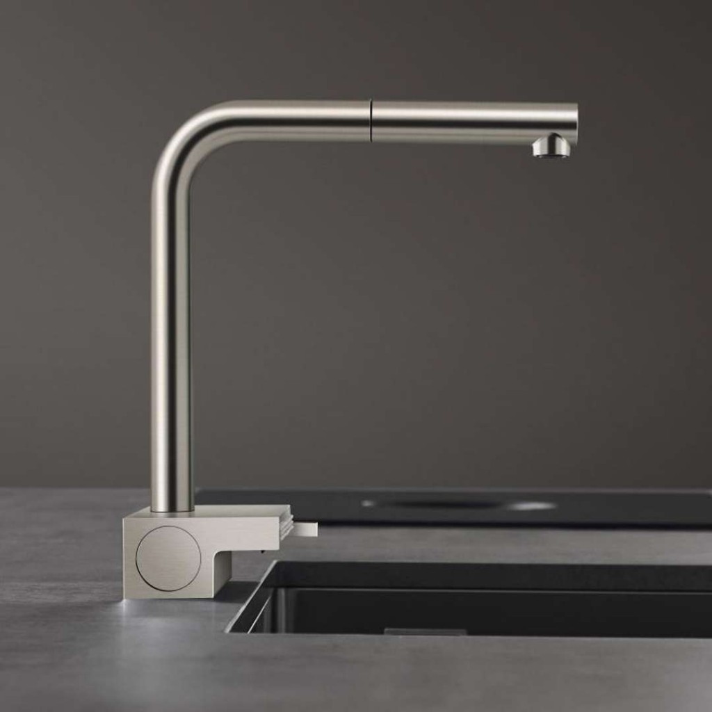 Designová kuchyňská baterie se zcela novým druhem laminárního sprchového proudu SatinFlow, který je tvořený 133 samostatnými útlými vodními paprsky. Ty jemně a účinně obtékají křehké suroviny, což umožňuje jejich důkladnější a šetrnější mytí. Skvělým řešením je také použití multifunkčního síta, které je navrženo tak, aby se dokonale hodilo pod laminární proud kuchyňské baterie.