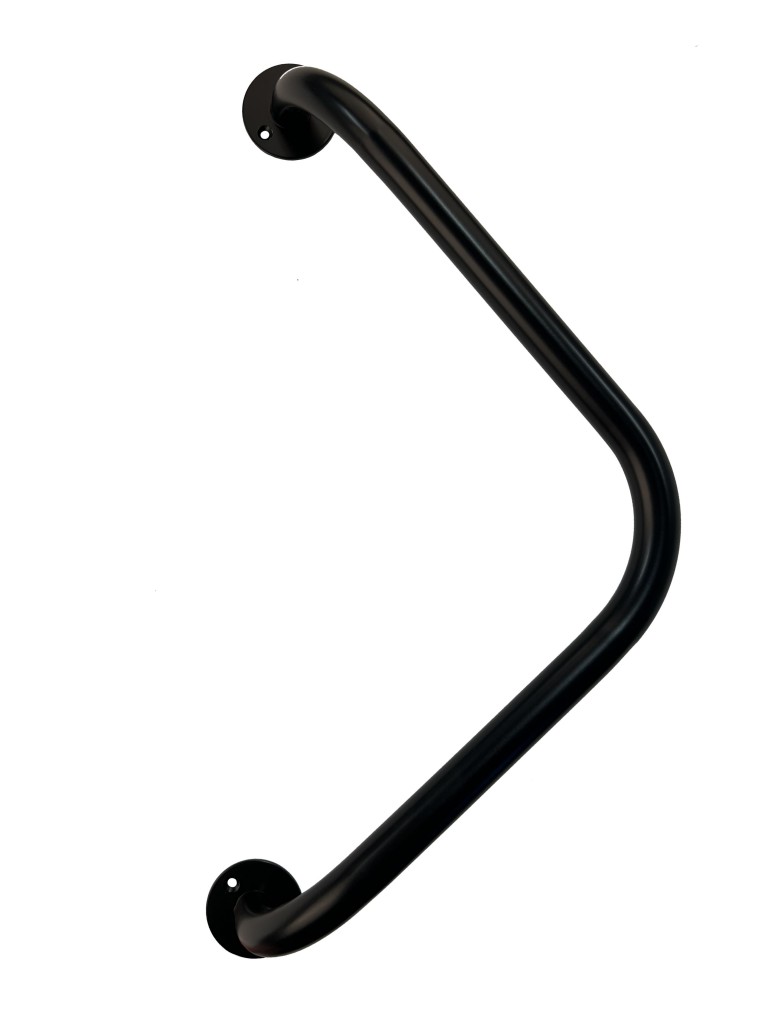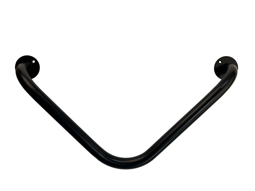 Velmi praktickým doplňkem, který významně přispívá bezpečnosti ve Vaší koupelně či toaletě je koupelnové madlo. Zalomení koupelnového madla 90° zajišťuje jeho univerzálnější použití. Určeno pro připevnění ke stěně pomocí šroubů. Povrchová úprava v bílé a černé barvě či nerez provedení zajišťuje dlouhou živostnost koupelnového madla.