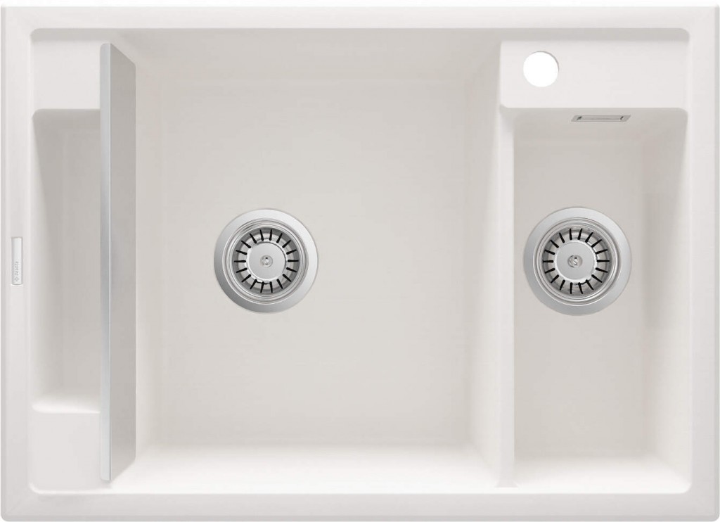 Granitový 1,5-miskový dřez série Magnetic, je moderní dřez s magnetickými vlastnostmi, které jsou pro uživatele na první pohled neviditelné. Dřezy z originální kolekce Magnetic jsou vybaveny magnety, díky kterým lze na bok mísy umístit ocelový kryt. Elegantní kryt odděluje mísu od boční police a vytváří další prostor, který zvyšuje funkčnost dřezu a umožňuje jej volitelně vybavit vyhrazeným příslušenstvím z kolekce - hygienickými držáky na utěrku a kuchyňskou drátěnku nebo praktickými košíky s odkapávačem. Dřez zapuštěný do desky má prostornou mísu, která pojme i pekáče a malou misku např. pro oplachování zeleniny a ovoce.