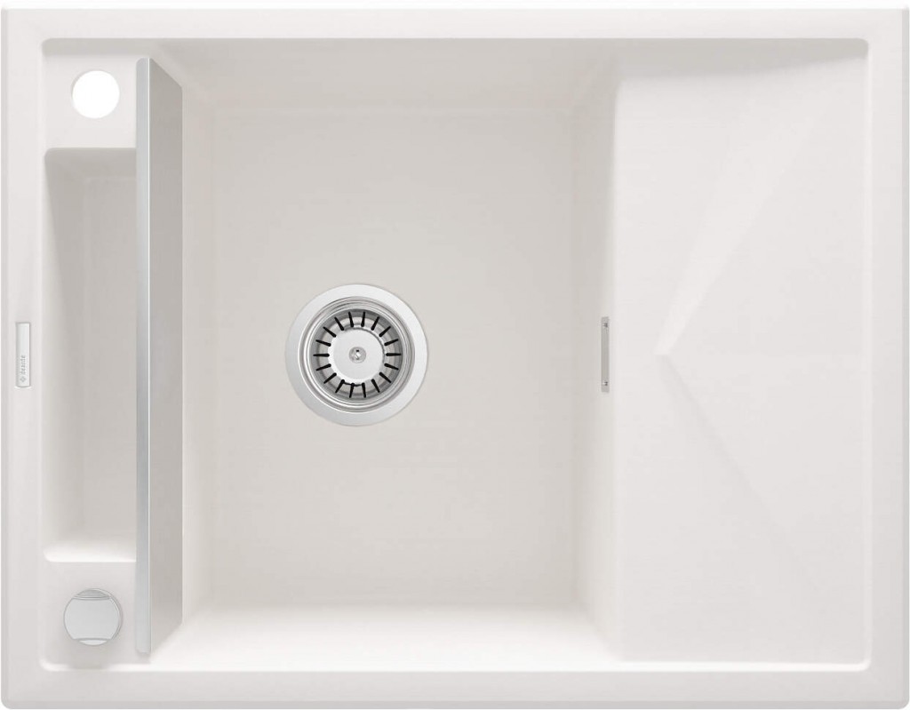 Granitový 1-miskový dřez série Magnetic, je moderní dřez s magnetickými vlastnostmi, které jsou pro uživatele na první pohled neviditelné. Dřezy z originální kolekce Magnetic jsou vybaveny magnety, díky kterým lze na bok mísy umístit ocelový kryt. Elegantní kryt odděluje mísu od boční police a vytváří další prostor, který zvyšuje funkčnost dřezu a umožňuje jej volitelně vybavit vyhrazeným příslušenstvím z kolekce - hygienickými držáky na utěrku a kuchyňskou drátěnku nebo praktickými košíky s odkapávačem . Dřez zapuštěný do desky má prostornou mísu a krátký odkapávač zaujme ozdobným motivem rybí kosti, který urychluje odtok vody.