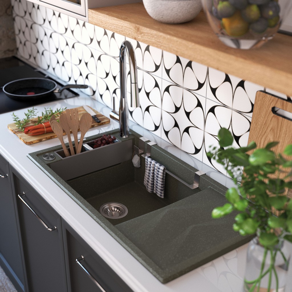 - dřez je vybaven příslušenstvím s připojením na myčku
