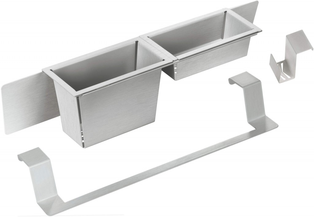 Chytrá sada doplňků ze série Magnetic, která se bude hodit v každé kuchyni. Pomáhají udržovat hygienu, protože usnadňují odkapávání houbičky nebo příboru a blokují tak množení bakterií a jiných mikroorganismů. Navíc jsou velmi diskrétní a funkční. Mokrá část kuchyně je čistá a uklizená. Sada příslušenství se skládá ze 2 košů s odkapávačem, háčkem na houbičku a kolejnice na hadřík. Byly vyrobeny z kvalitní, broušené nerezové oceli, takže se budou snadno hodit k ostatním prvkům kuchyňského vybavení.