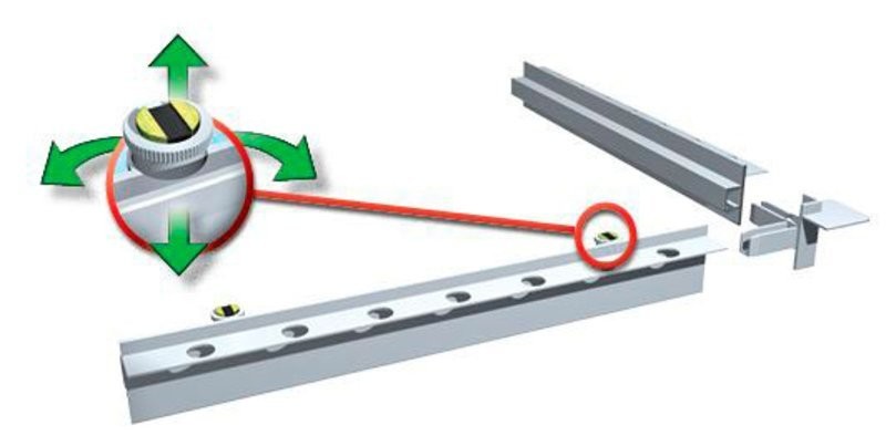 Poté dvířka vyjmeme a rámeček zabudujeme pod obklady zároveň s okolním obkladem. Rámeček je skládací. Rozměr můžeme měnit s tolerancí +/-5 mm. Dvířka dorovnáme pomocí stavitelných magnetů se závitovým spojením.
