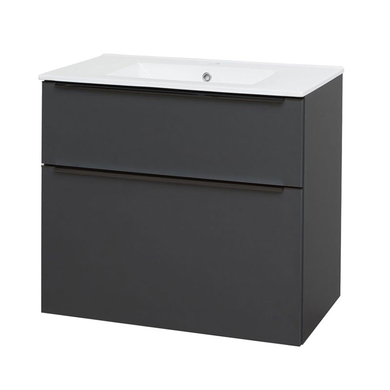 Mereo Mailo, koupelnová skříňka s keramickým umyvadlem 81 cm, antracit, černé madlo (CN531B)