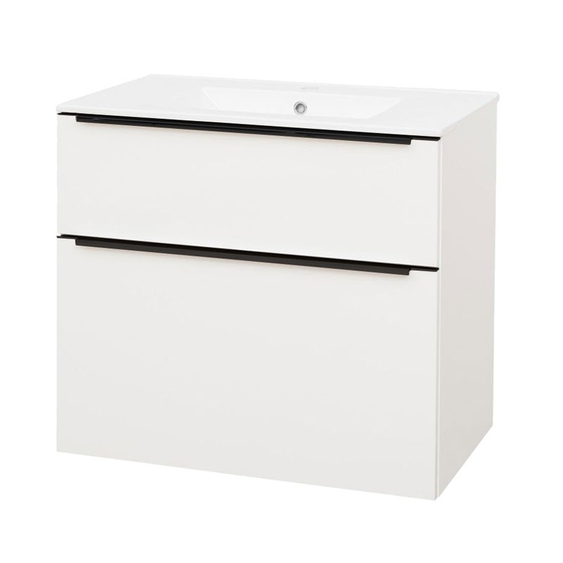Mereo Mailo, koupelnová skříňka s keramickým umyvadlem 81 cm, bílá, černé madlo (CN511B)
