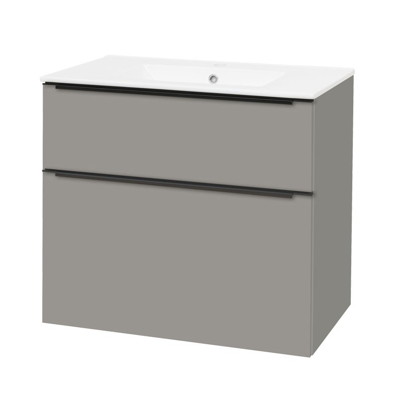 Mereo Mailo, koupelnová skříňka s keramickým umyvadlem 81 cm, šedá mat, černé madlo (CN571B)