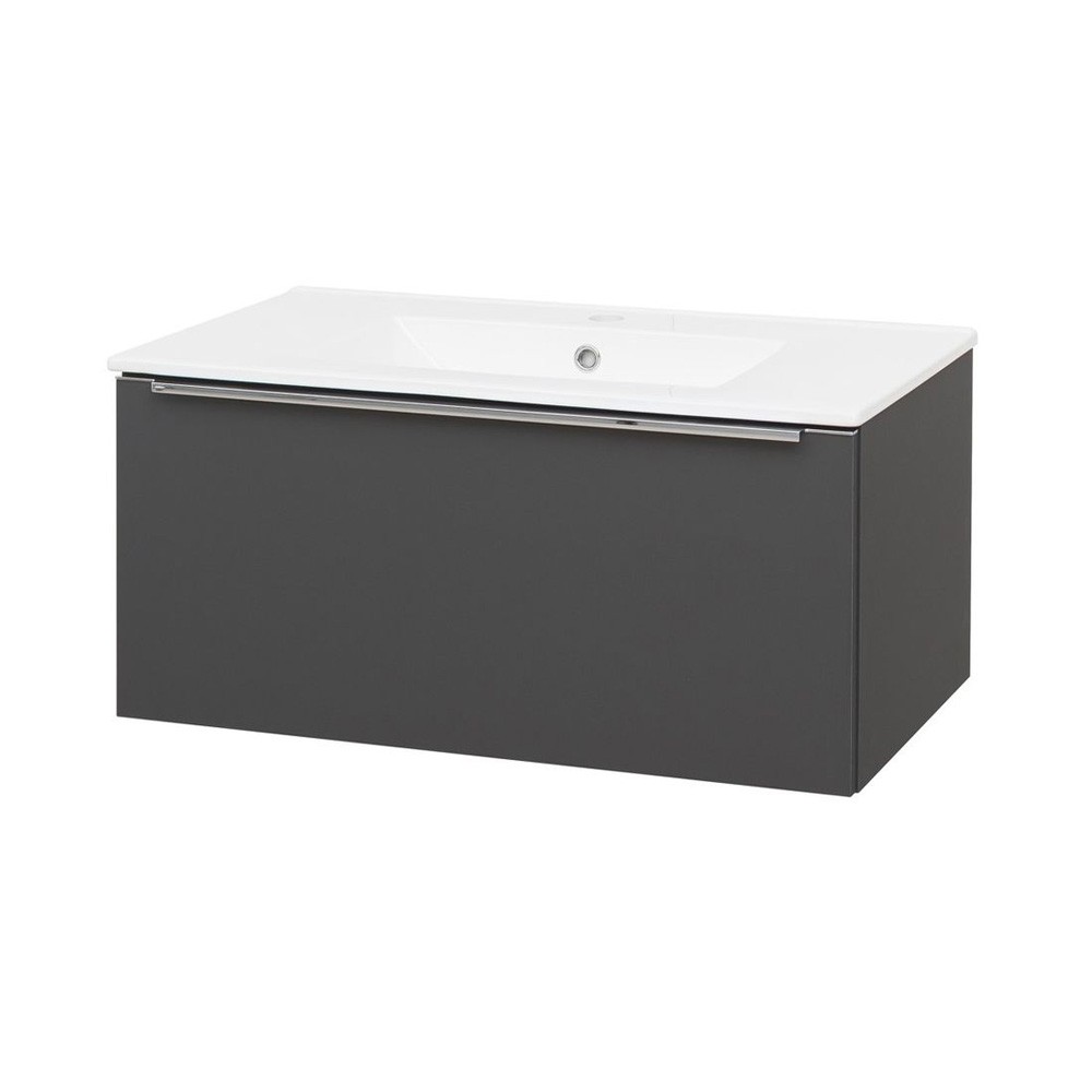Mereo Mailo, koupelnová skříňka s keramickým umyvadlem 81 cm, antracit, chrom madlo (CN536)