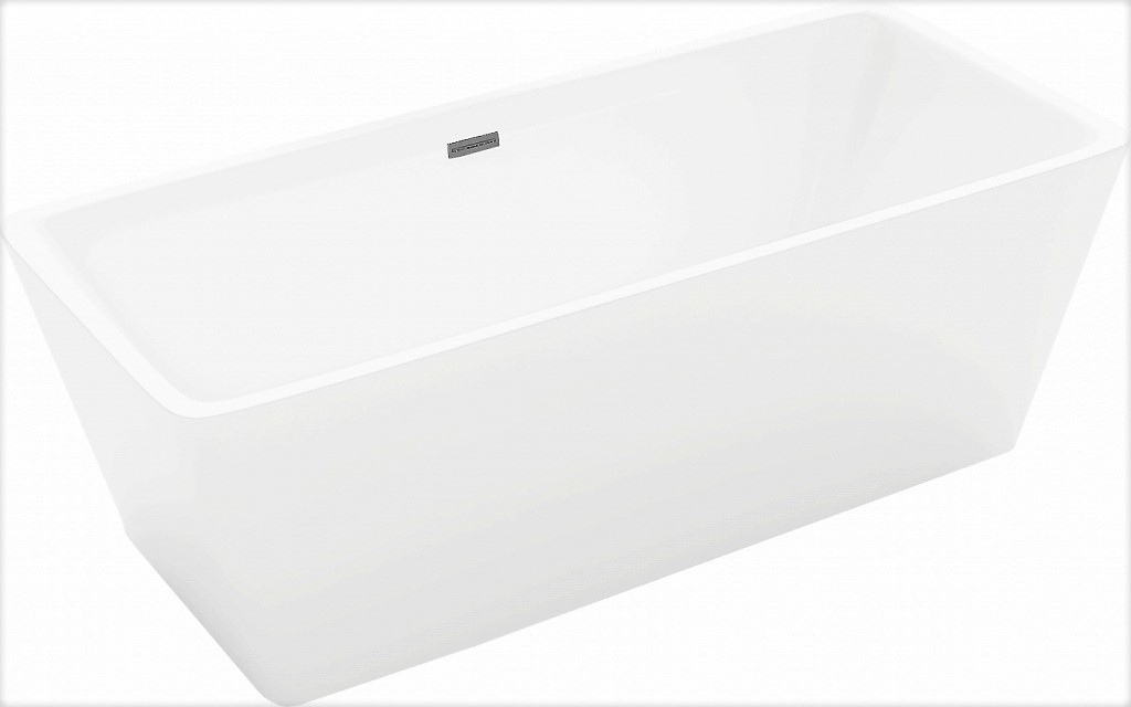 Volně stojící obdélníková akrylátová vana série MALAGA od výrobce MEXEN s přepadem a umístěném odpadu na středu vany. Součástí vany je odtoková zátka na sifon.