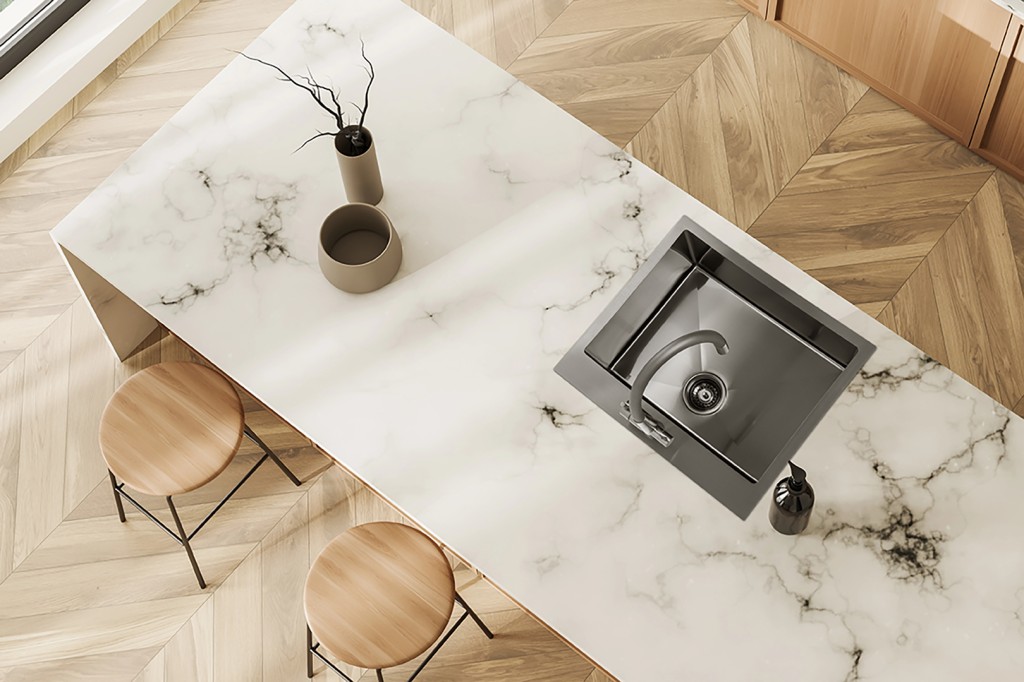 Dřezy Malawi umožňují dvě formy montáže – jako zapuštěné nebo v jedné rovině s pracovní deskou – čímž zajišťují estetickou integraci a snadné čištění bez rušivých přechodů.