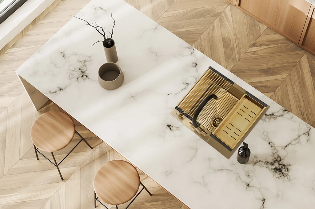 Dřezy Malawi umožňují dvě formy montáže – jako zapuštěné nebo v jedné rovině s pracovní deskou – čímž zajišťují estetickou integraci a snadné čištění bez rušivých přechodů.
