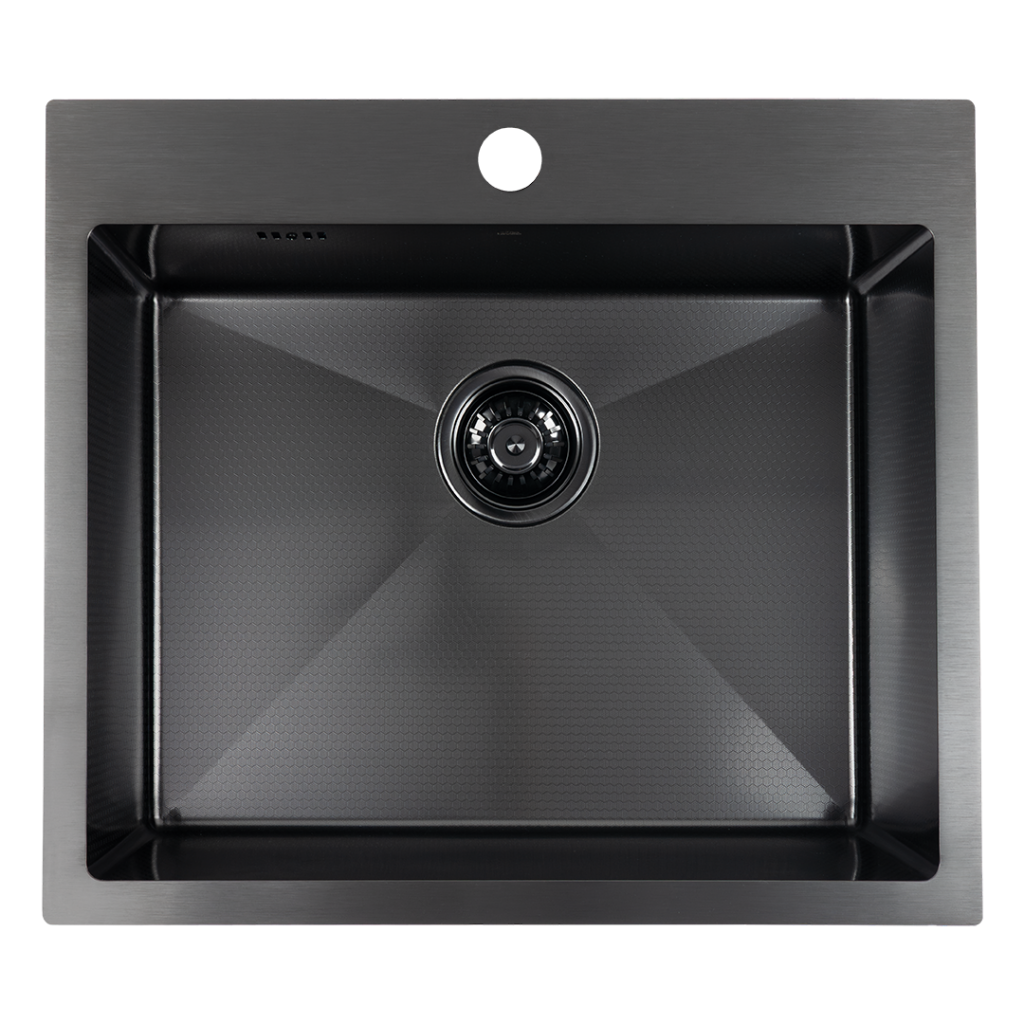 Pro jednotný vzhled doporučujeme kombinovat s matně černou baterií. Pro kontrastní a luxusní efekt lze zvolit baterii ve zlaté nebo chromové barvě, která dřezu dodá elegantní akcent.