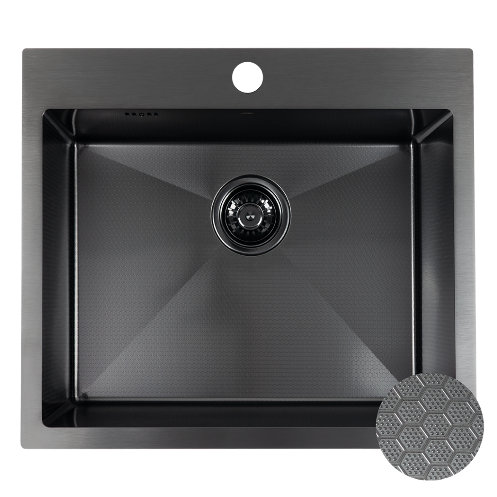 Černý ocelový dřez Malawi s povrchem Honeycomb je dokonalým spojením přírodních motivů a moderního designu. Inspirací byla preciznost včelí plástve – struktury, která symbolizuje rovnováhu, pevnost a krásu přírody. Díky tomuto designu získává dřez nejen unikátní vzhled, ale i praktické vlastnosti.