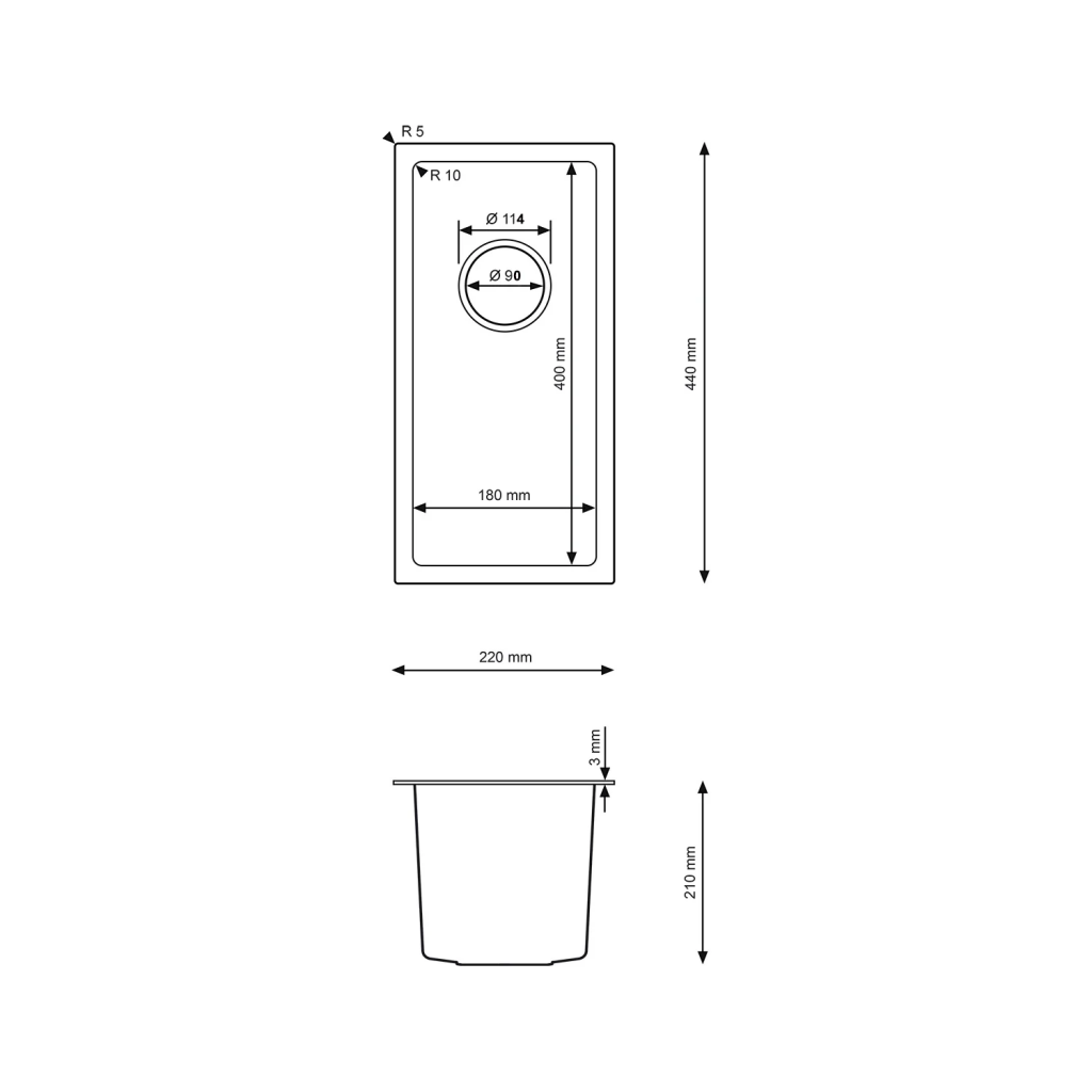 - vhodný jako přídavná miska pro dřezy s výškou 440 mm – modely 44 x 44, 54 x 44, 74 x 44.