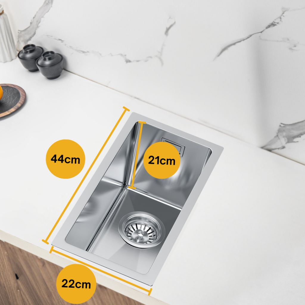 Kuchyňský dřez z nerezové oceli 22 x 44 se sifonem je praktickým a stylovým řešením do každé moderní kuchyně. Je vyroben z kvalitní INOX oceli s kartáčovaným saténovým povrchem, který je odolný, snadno se udržuje a působí elegantně.