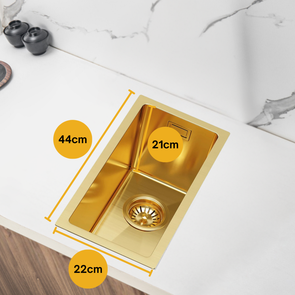 Dřez je v nabídce ve třech elegantních barevných variantách – narez, zlato a grafit. Díky tomu si snadno vyberete provedení, které nejlépe ladí s vaší kuchyní, armaturami nebo spotřebiči. Každý odstín dodá kuchyňské lince jiný charakter – nerez pro klasický vzhled, zlato pro luxusní nádech a grafit pro moderní, industriální styl.