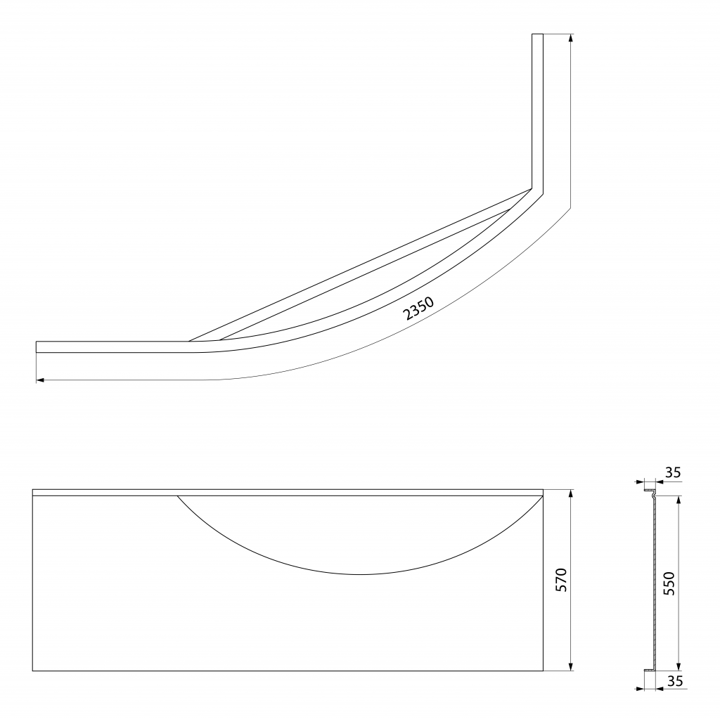 Rohový panel - levý k vaně Mamba L 170. Zakrývá přední zaoblenou a nejkratší rovnou boční část vany.