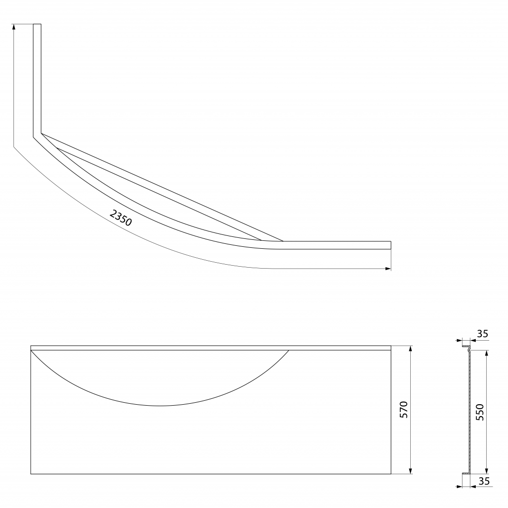 Rohový panel - pravý k vaně Mamba R 170. Zakrývá přední zaoblenou a nejkratší rovnou boční část vany.