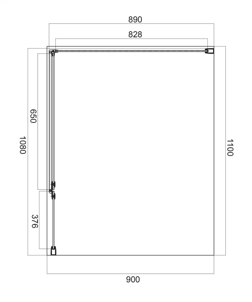- stěna s dveřmi: 110 cm