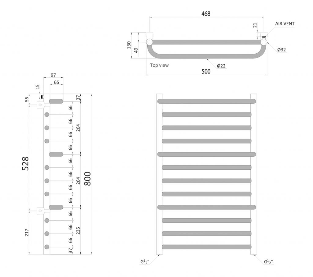 Topení s jednobodovým připojenímKlasické těleso vyrobené z pochromovaných ocelových trubek, doplněné praktickými madly na sušení ručníků.
