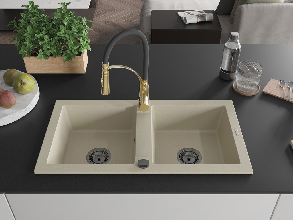 Speciální složení materiálu použitého pro výrobu je žula (80% žula – kámen, 20% pryskyřice) a jeho vysoká hustota garantuje bezpečné používání výrobku, a proto jsou granitové dřezy tak oblíbené. Díky povrchové úpravě nejsou na granitovém dřezu vidět zaschlé kapky, je odolný vůči skvrnám a neztrácí barvu. Povrch je odolný vůči nárazu, poškrábání, změně barvy, vysoké teplotě a teplotním šokům. Při jejich údržbě se používají obvyklé čistící prostředky nebo prostředky na nádobí s jemným abrasivem. Výhodou je rozmanitá barevná nabídka.