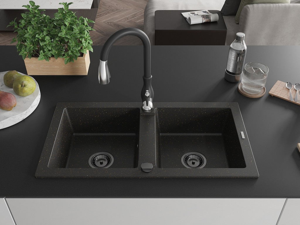 Speciální složení materiálu použitého pro výrobu je žula (80% žula – kámen, 20% pryskyřice) a jeho vysoká hustota garantuje bezpečné používání výrobku, a proto jsou granitové dřezy tak oblíbené. Díky povrchové úpravě nejsou na granitovém dřezu vidět zaschlé kapky, je odolný vůči skvrnám a neztrácí barvu. Povrch je odolný vůči nárazu, poškrábání, změně barvy, vysoké teplotě a teplotním šokům. Při jejich údržbě se používají obvyklé čistící prostředky nebo prostředky na nádobí s jemným abrasivem. Výhodou je rozmanitá barevná nabídka.