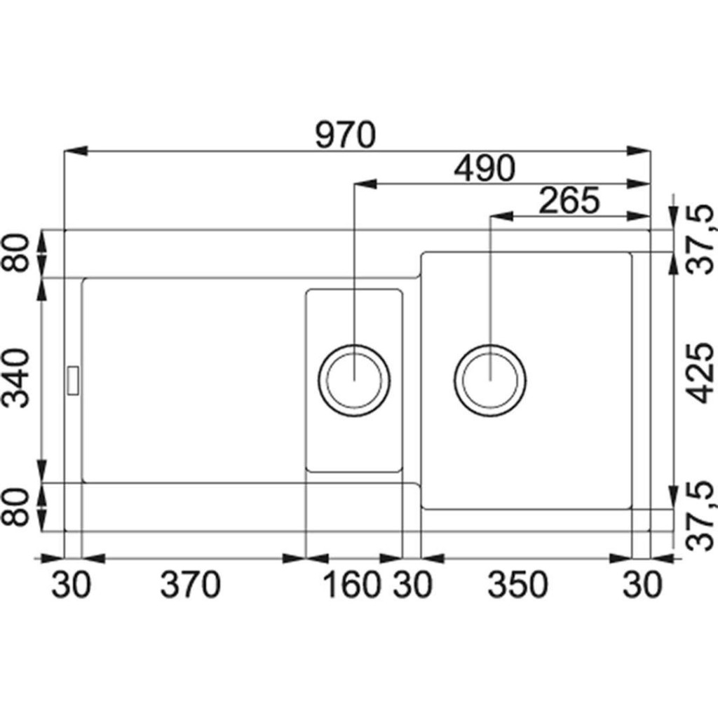- 2 dřezy: 350 × 425 × 200 mm