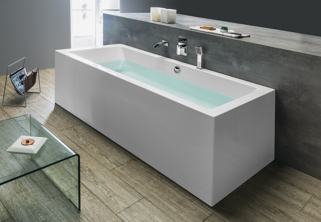 Balení obsahuje volně stojící akrylátovou vanu a ocelové podnože.