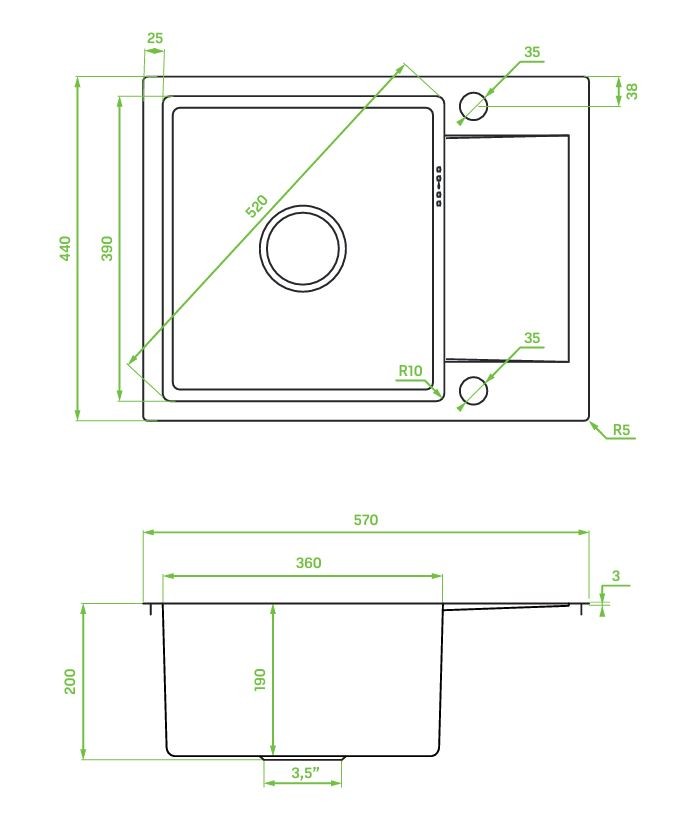 Minimalistické provedení s úzkými rohy nejen působí esteticky, ale také usnadňuje čištění. Velkorysá hloubka a rozměry dřezu umožňují pohodlné mytí i objemnějšího nádobí včetně plechů.