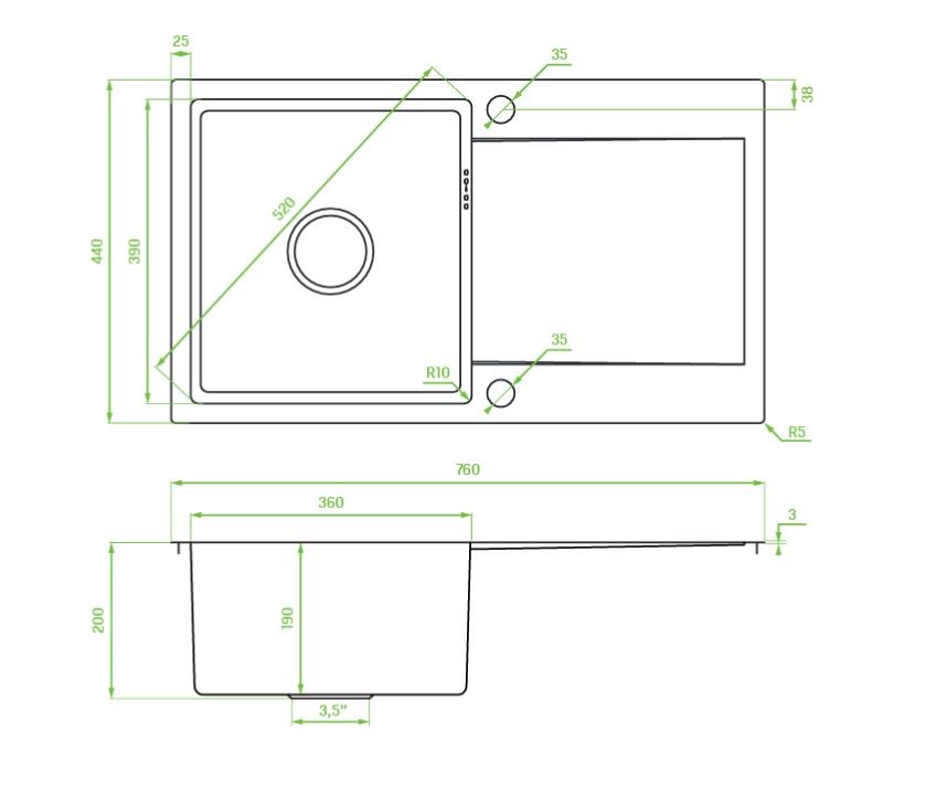 Minimalistické provedení s úzkými rohy nejen působí esteticky, ale také usnadňuje čištění. Velkorysá hloubka a rozměry dřezu umožňují pohodlné mytí i objemnějšího nádobí včetně plechů.