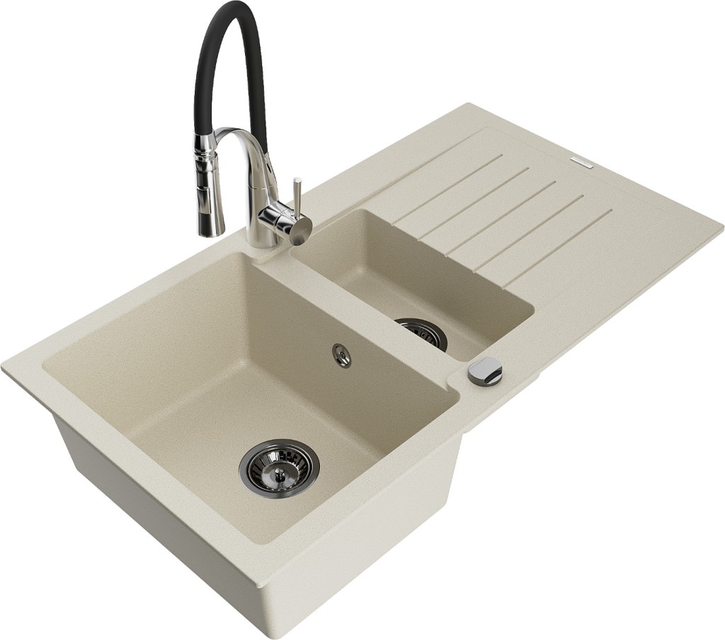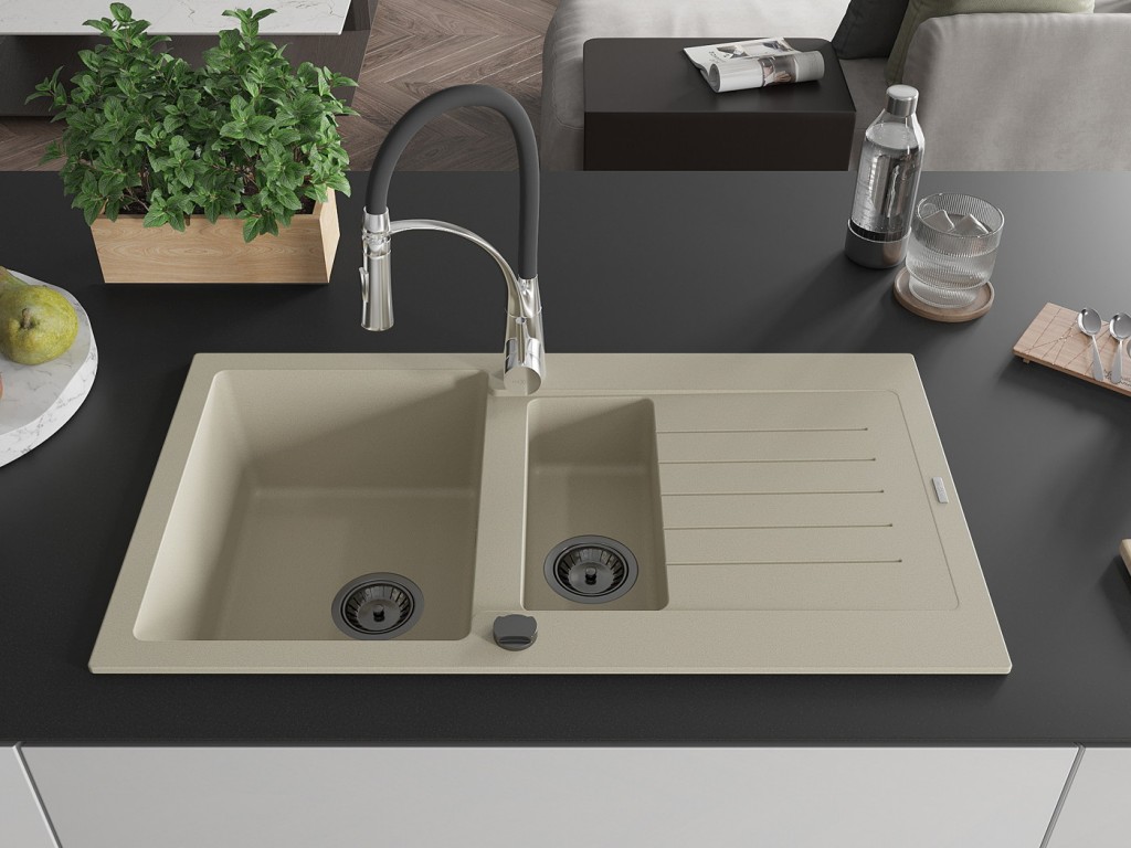 Speciální složení materiálu použitého pro výrobu je žula (80% žula – kámen, 20% pryskyřice) a jeho vysoká hustota garantuje bezpečné používání výrobku, a proto jsou granitové dřezy tak oblíbené. Díky povrchové úpravě nejsou na granitovém dřezu vidět zaschlé kapky, je odolný vůči skvrnám a neztrácí barvu. Povrch je odolný vůči nárazu, poškrábání, změně barvy, vysoké teplotě a teplotním šokům. Při jejich údržbě se používají obvyklé čistící prostředky nebo prostředky na nádobí s jemným abrasivem. Výhodou je rozmanitá barevná nabídka.