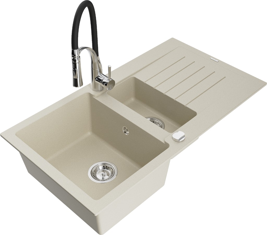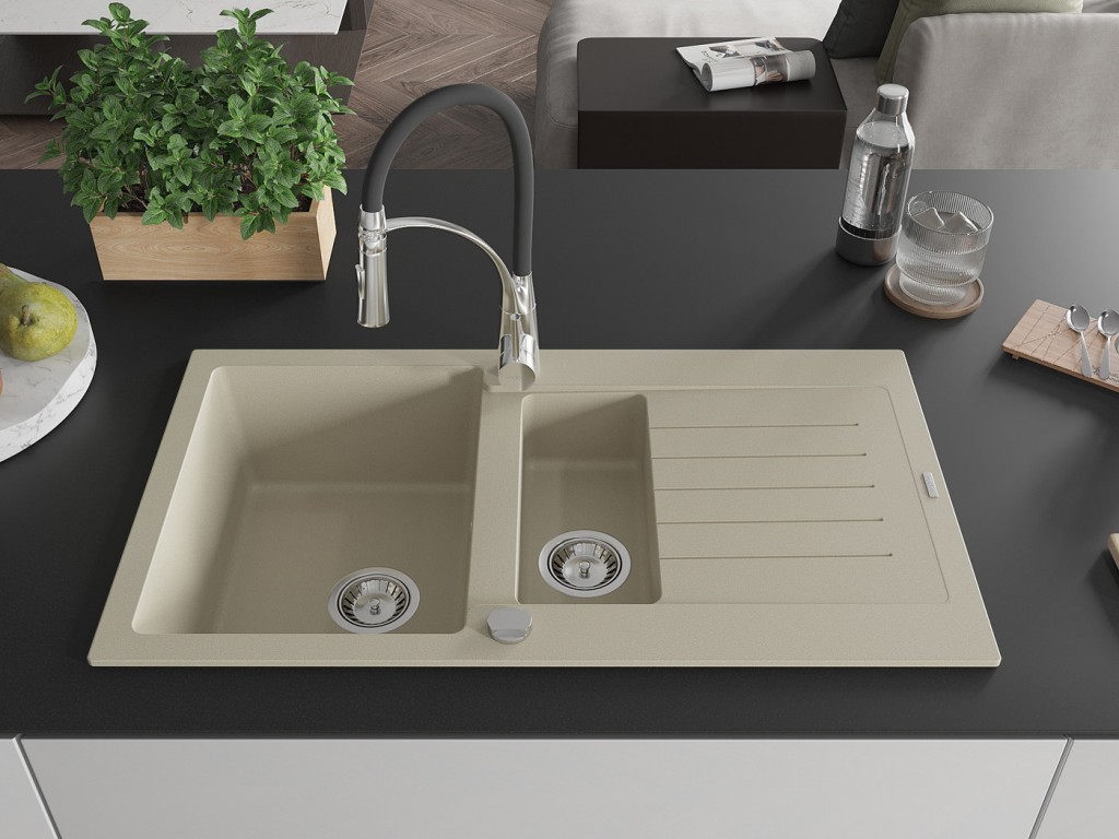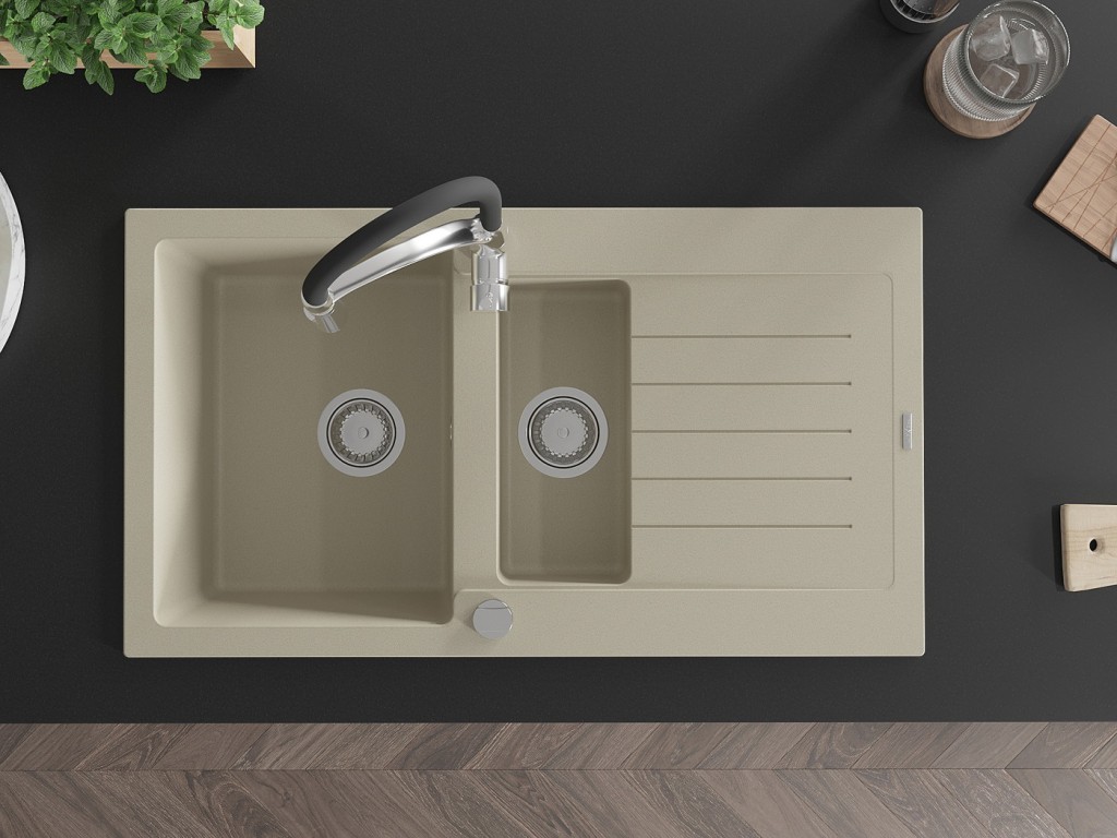 Speciální složení materiálu použitého pro výrobu je žula (80% žula – kámen, 20% pryskyřice) a jeho vysoká hustota garantuje bezpečné používání výrobku, a proto jsou granitové dřezy tak oblíbené. Díky povrchové úpravě nejsou na granitovém dřezu vidět zaschlé kapky, je odolný vůči skvrnám a neztrácí barvu. Povrch je odolný vůči nárazu, poškrábání, změně barvy, vysoké teplotě a teplotním šokům. Při jejich údržbě se používají obvyklé čistící prostředky nebo prostředky na nádobí s jemným abrasivem. Výhodou je rozmanitá barevná nabídka.