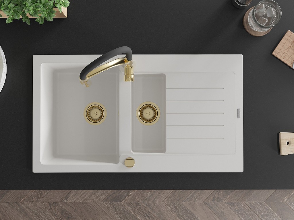 Speciální složení materiálu použitého pro výrobu je žula (80% žula – kámen, 20% pryskyřice) a jeho vysoká hustota garantuje bezpečné používání výrobku, a proto jsou granitové dřezy tak oblíbené. Díky povrchové úpravě nejsou na granitovém dřezu vidět zaschlé kapky, je odolný vůči skvrnám a neztrácí barvu. Povrch je odolný vůči nárazu, poškrábání, změně barvy, vysoké teplotě a teplotním šokům. Při jejich údržbě se používají obvyklé čistící prostředky nebo prostředky na nádobí s jemným abrasivem. Výhodou je rozmanitá barevná nabídka.