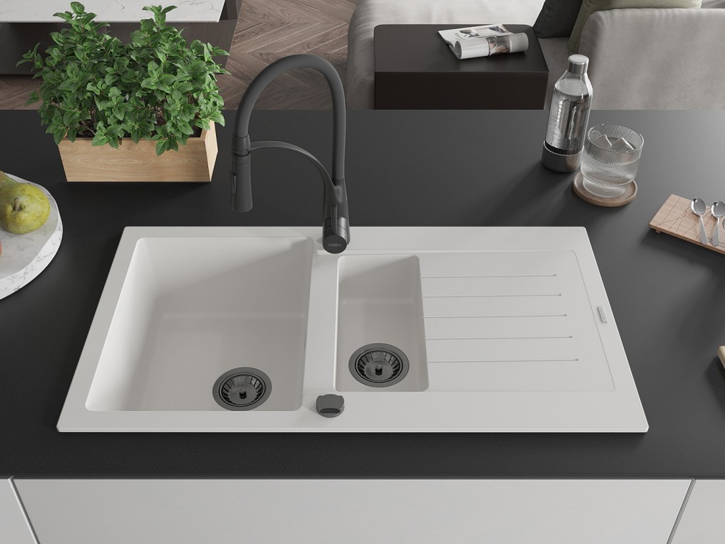 Speciální složení materiálu použitého pro výrobu je žula (80% žula – kámen, 20% pryskyřice) a jeho vysoká hustota garantuje bezpečné používání výrobku, a proto jsou granitové dřezy tak oblíbené. Díky povrchové úpravě nejsou na granitovém dřezu vidět zaschlé kapky, je odolný vůči skvrnám a neztrácí barvu. Povrch je odolný vůči nárazu, poškrábání, změně barvy, vysoké teplotě a teplotním šokům. Při jejich údržbě se používají obvyklé čistící prostředky nebo prostředky na nádobí s jemným abrasivem. Výhodou je rozmanitá barevná nabídka.