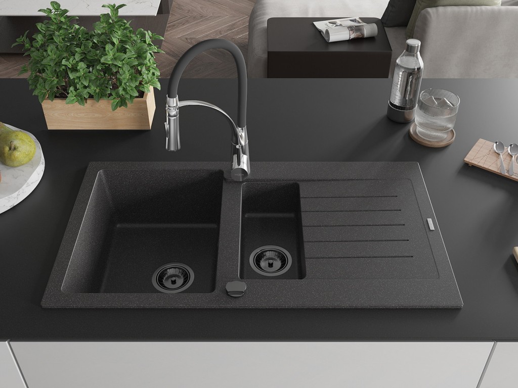 Speciální složení materiálu použitého pro výrobu je žula (80% žula – kámen, 20% pryskyřice) a jeho vysoká hustota garantuje bezpečné používání výrobku, a proto jsou granitové dřezy tak oblíbené. Díky povrchové úpravě nejsou na granitovém dřezu vidět zaschlé kapky, je odolný vůči skvrnám a neztrácí barvu. Povrch je odolný vůči nárazu, poškrábání, změně barvy, vysoké teplotě a teplotním šokům. Při jejich údržbě se používají obvyklé čistící prostředky nebo prostředky na nádobí s jemným abrasivem. Výhodou je rozmanitá barevná nabídka.