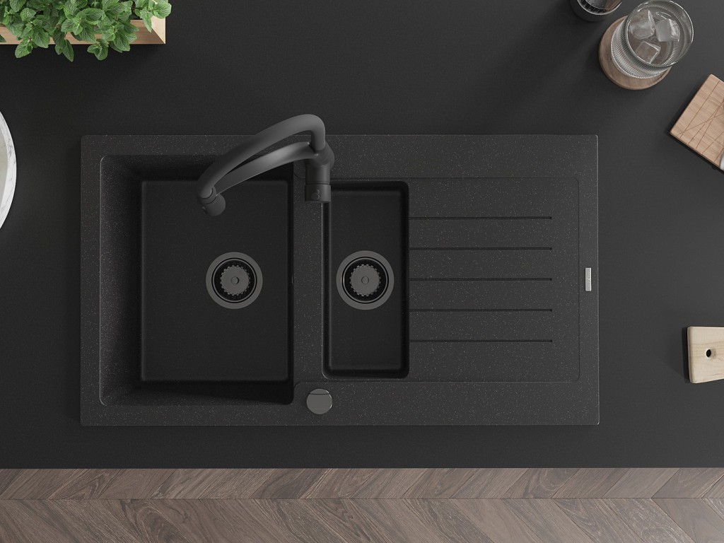Speciální složení materiálu použitého pro výrobu je žula (80% žula – kámen, 20% pryskyřice) a jeho vysoká hustota garantuje bezpečné používání výrobku, a proto jsou granitové dřezy tak oblíbené. Díky povrchové úpravě nejsou na granitovém dřezu vidět zaschlé kapky, je odolný vůči skvrnám a neztrácí barvu. Povrch je odolný vůči nárazu, poškrábání, změně barvy, vysoké teplotě a teplotním šokům. Při jejich údržbě se používají obvyklé čistící prostředky nebo prostředky na nádobí s jemným abrasivem. Výhodou je rozmanitá barevná nabídka.