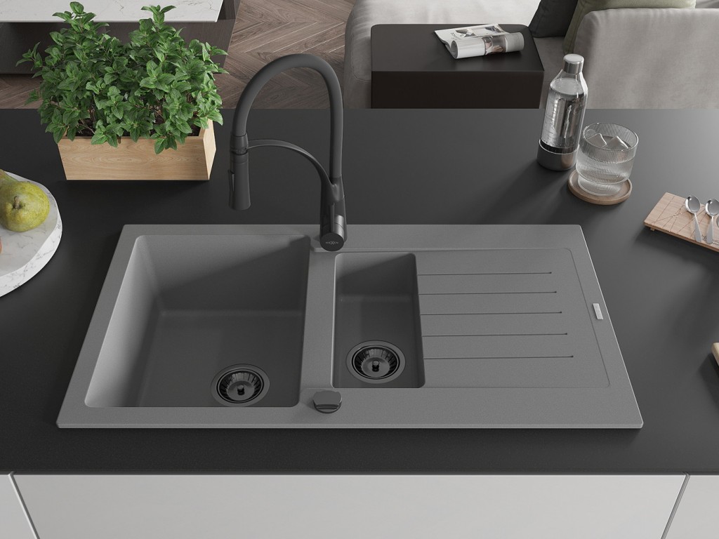 Speciální složení materiálu použitého pro výrobu je žula (80% žula – kámen, 20% pryskyřice) a jeho vysoká hustota garantuje bezpečné používání výrobku, a proto jsou granitové dřezy tak oblíbené. Díky povrchové úpravě nejsou na granitovém dřezu vidět zaschlé kapky, je odolný vůči skvrnám a neztrácí barvu. Povrch je odolný vůči nárazu, poškrábání, změně barvy, vysoké teplotě a teplotním šokům. Při jejich údržbě se používají obvyklé čistící prostředky nebo prostředky na nádobí s jemným abrasivem. Výhodou je rozmanitá barevná nabídka.