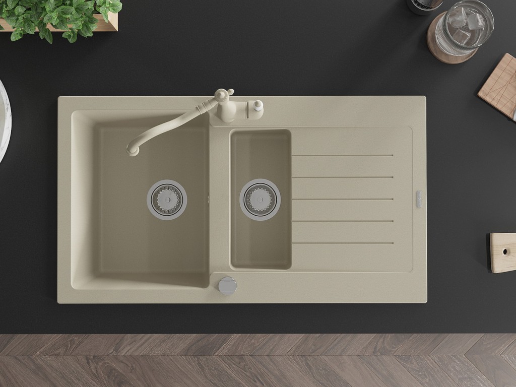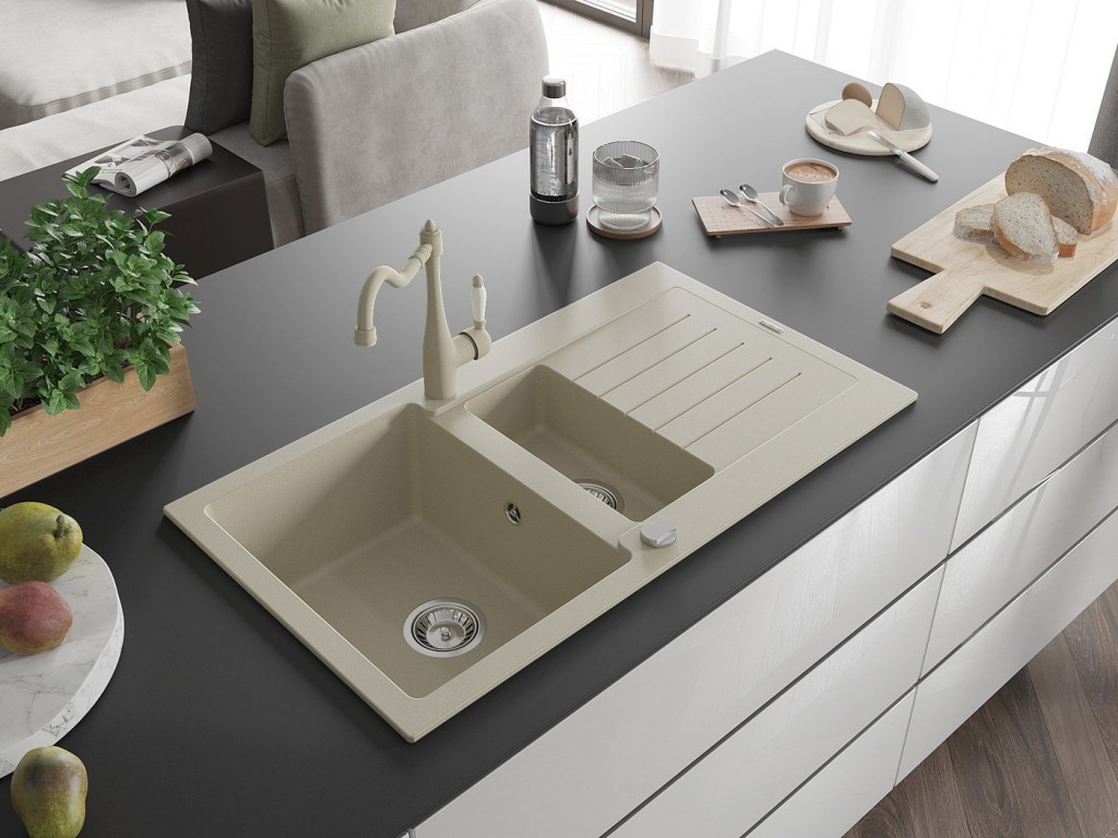 Speciální složení materiálu použitého pro výrobu je žula (80% žula – kámen, 20% pryskyřice) a jeho vysoká hustota garantuje bezpečné používání výrobku, a proto jsou granitové dřezy tak oblíbené. Díky povrchové úpravě nejsou na granitovém dřezu vidět zaschlé kapky, je odolný vůči skvrnám a neztrácí barvu. Povrch je odolný vůči nárazu, poškrábání, změně barvy, vysoké teplotě a teplotním šokům. Při jejich údržbě se používají obvyklé čistící prostředky nebo prostředky na nádobí s jemným abrasivem. Výhodou je rozmanitá barevná nabídka.