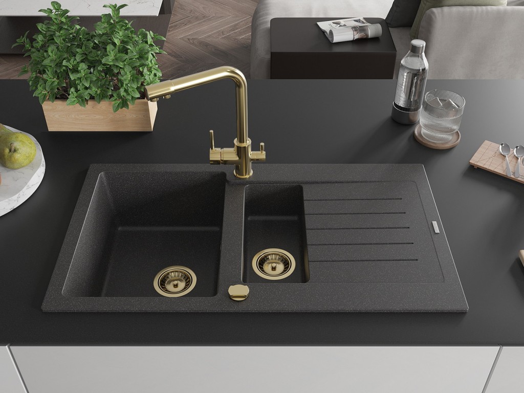 Speciální složení materiálu použitého pro výrobu je žula (80% žula – kámen, 20% pryskyřice) a jeho vysoká hustota garantuje bezpečné používání výrobku, a proto jsou granitové dřezy tak oblíbené. Díky povrchové úpravě nejsou na granitovém dřezu vidět zaschlé kapky, je odolný vůči skvrnám a neztrácí barvu. Povrch je odolný vůči nárazu, poškrábání, změně barvy, vysoké teplotě a teplotním šokům. Při jejich údržbě se používají obvyklé čistící prostředky nebo prostředky na nádobí s jemným abrasivem. Výhodou je rozmanitá barevná nabídka.