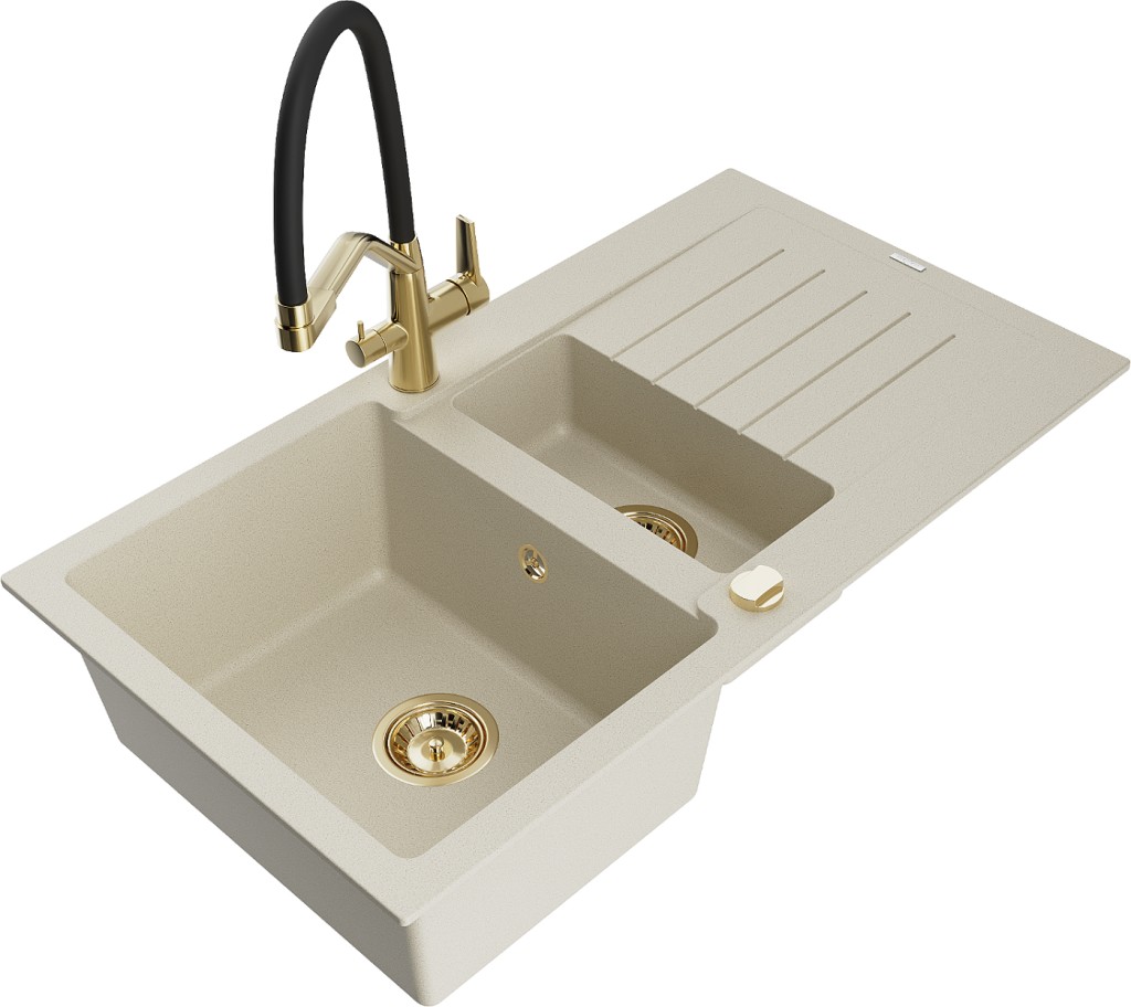 Speciální složení materiálu použitého pro výrobu je žula (80% žula – kámen, 20% pryskyřice) a jeho vysoká hustota garantuje bezpečné používání výrobku, a proto jsou granitové dřezy tak oblíbené. Díky povrchové úpravě nejsou na granitovém dřezu vidět zaschlé kapky, je odolný vůči skvrnám a neztrácí barvu. Povrch je odolný vůči nárazu, poškrábání, změně barvy, vysoké teplotě a teplotním šokům. Při jejich údržbě se používají obvyklé čistící prostředky nebo prostředky na nádobí s jemným abrasivem. Výhodou je rozmanitá barevná nabídka.