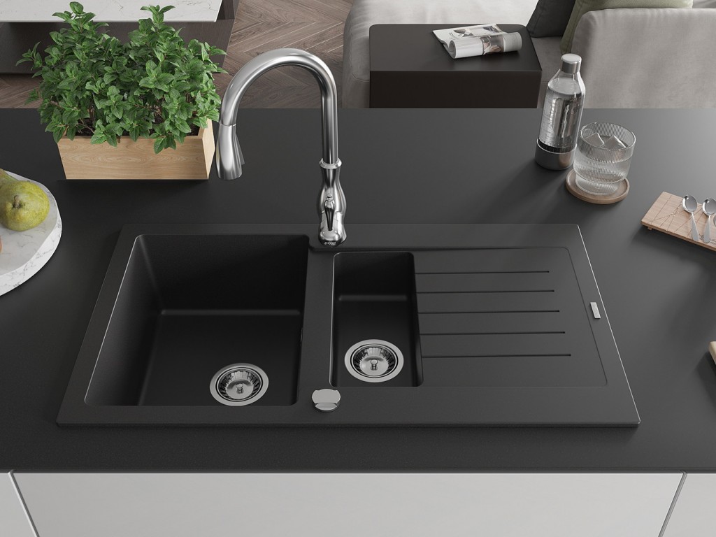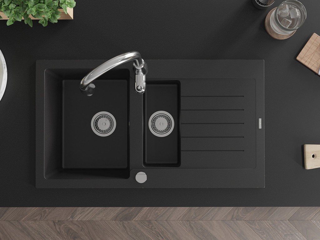 Speciální složení materiálu použitého pro výrobu je žula (80% žula – kámen, 20% pryskyřice) a jeho vysoká hustota garantuje bezpečné používání výrobku, a proto jsou granitové dřezy tak oblíbené. Díky povrchové úpravě nejsou na granitovém dřezu vidět zaschlé kapky, je odolný vůči skvrnám a neztrácí barvu. Povrch je odolný vůči nárazu, poškrábání, změně barvy, vysoké teplotě a teplotním šokům. Při jejich údržbě se používají obvyklé čistící prostředky nebo prostředky na nádobí s jemným abrasivem. Výhodou je rozmanitá barevná nabídka.