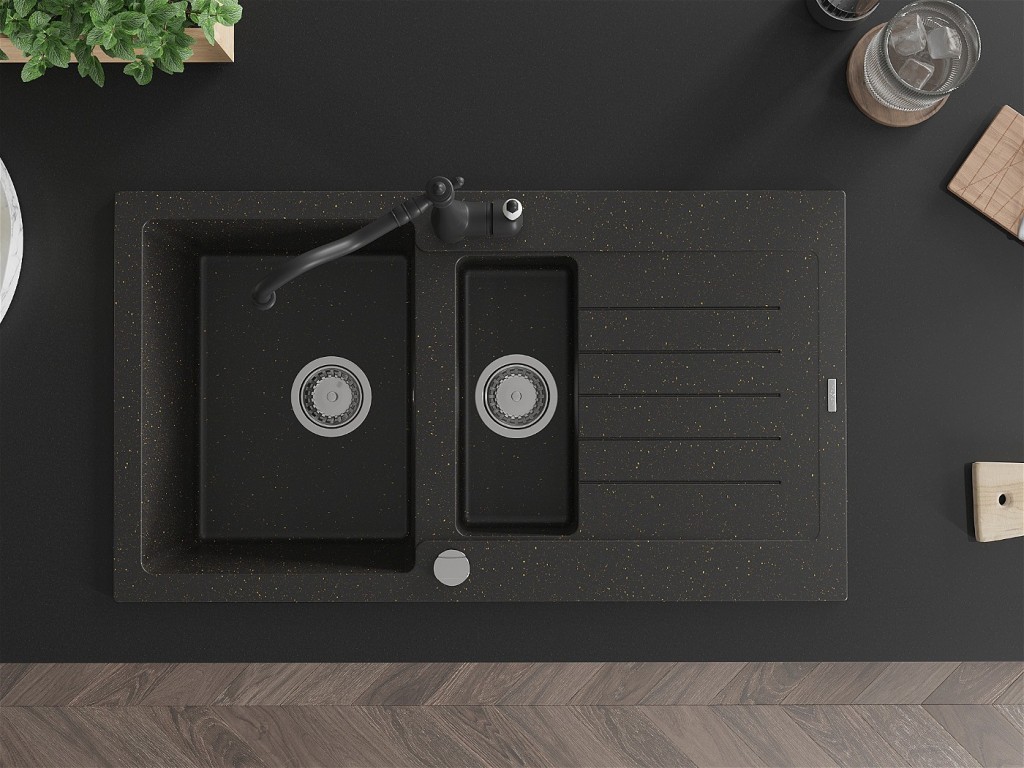 Speciální složení materiálu použitého pro výrobu je žula (80% žula – kámen, 20% pryskyřice) a jeho vysoká hustota garantuje bezpečné používání výrobku, a proto jsou granitové dřezy tak oblíbené. Díky povrchové úpravě nejsou na granitovém dřezu vidět zaschlé kapky, je odolný vůči skvrnám a neztrácí barvu. Povrch je odolný vůči nárazu, poškrábání, změně barvy, vysoké teplotě a teplotním šokům. Při jejich údržbě se používají obvyklé čistící prostředky nebo prostředky na nádobí s jemným abrasivem. Výhodou je rozmanitá barevná nabídka.