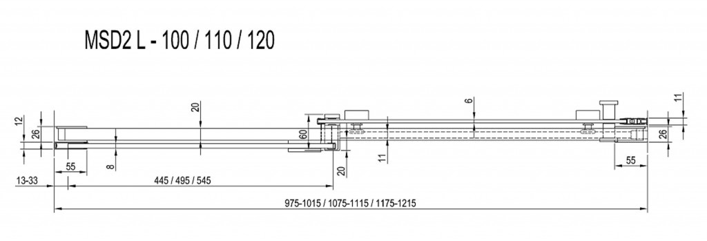 Výrobek se skládá ze 2 dílů, 1 díl tvoří posuvné dveře. Levá nebo pravá varianta výrobku je dána směrem otevírání posuvných dveří při pohledu zvenku.