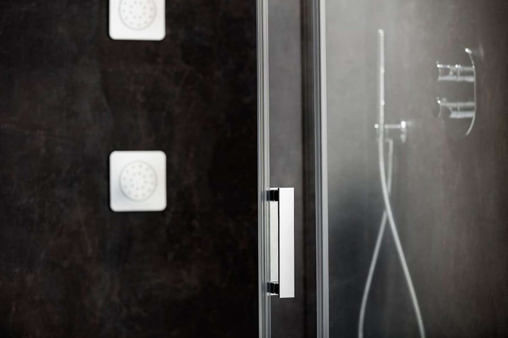 Série Matrix je typická rovnými plochými liniemi a tvarem rovnoběžníku. Absence spodního profilu dává vyniknout keramické dlažbě, pokud je na ní sprchový kout umístěn.
